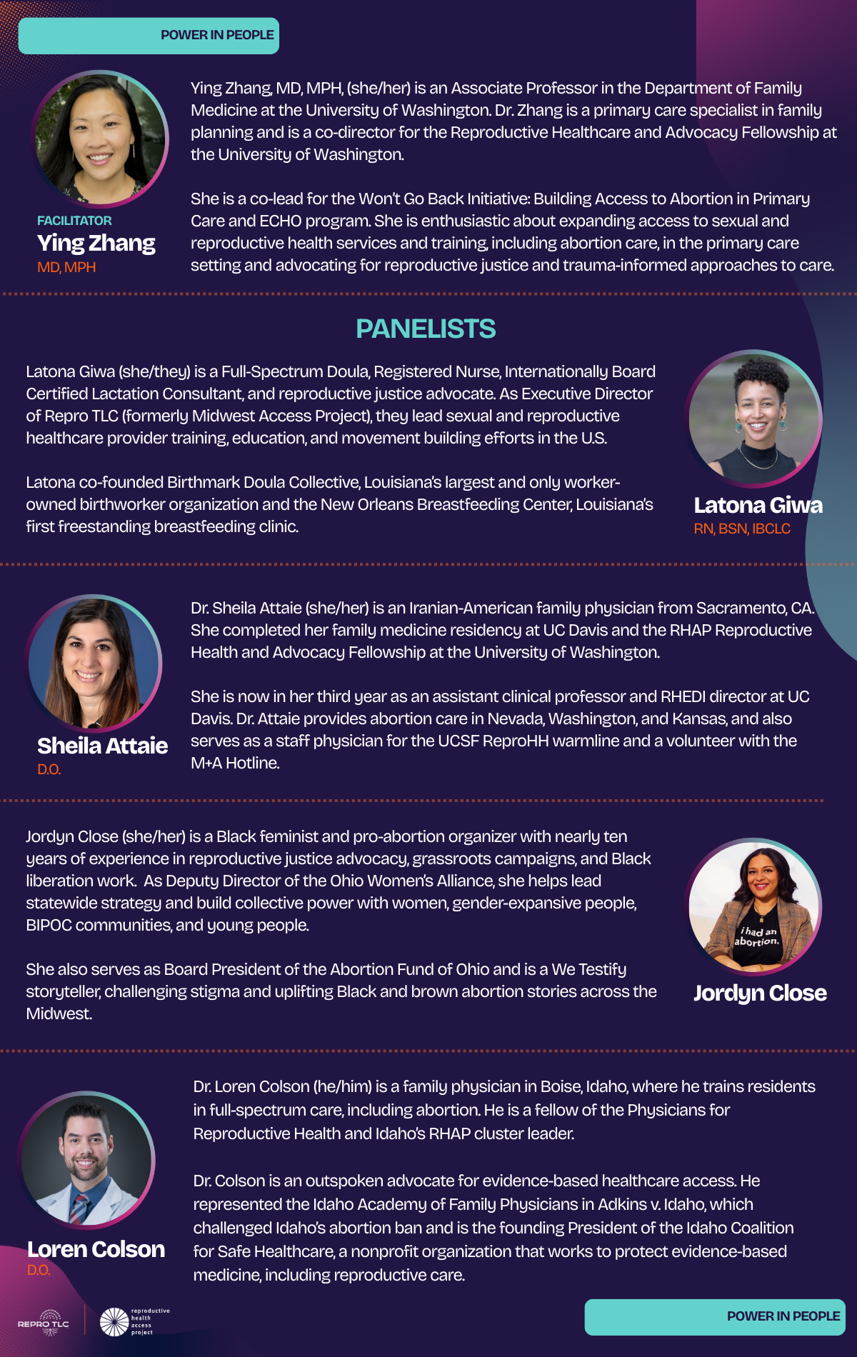 Power in Practice is the fifth session in the Power in Action: Sexual and Reproductive Health Advocacy Training series hosted by Repro TLC and the Reproductive Health Access Project (RHAP). In this final session, presenters will share real-world experiences, effective strategies, and practical advice for fostering practice change. Participants will develop evidence-based skills for navigating common institutional advocacy challenges and gain the confidence to inspire organizational change to protect and support the sexual and reproductive health needs of your patients.